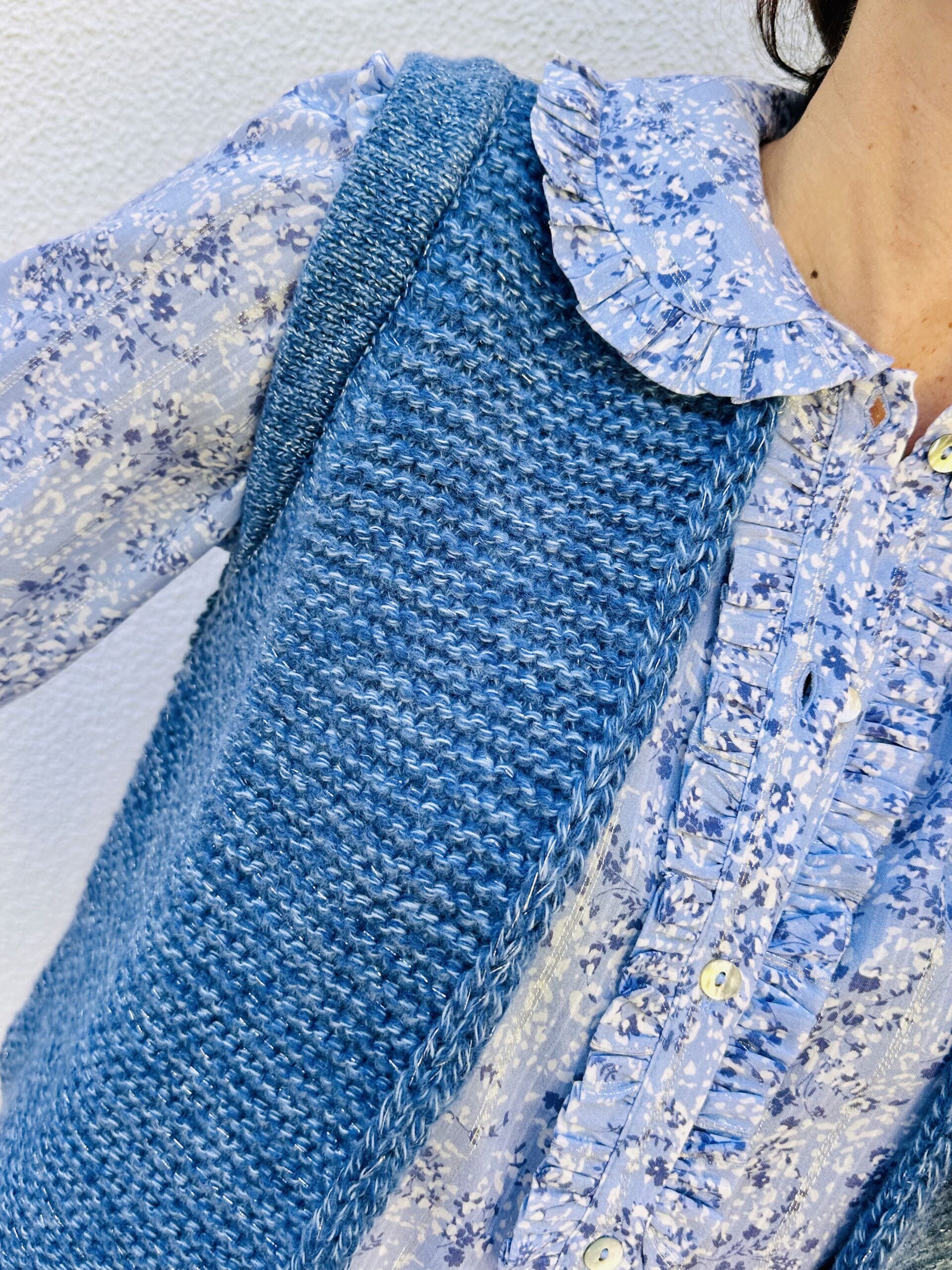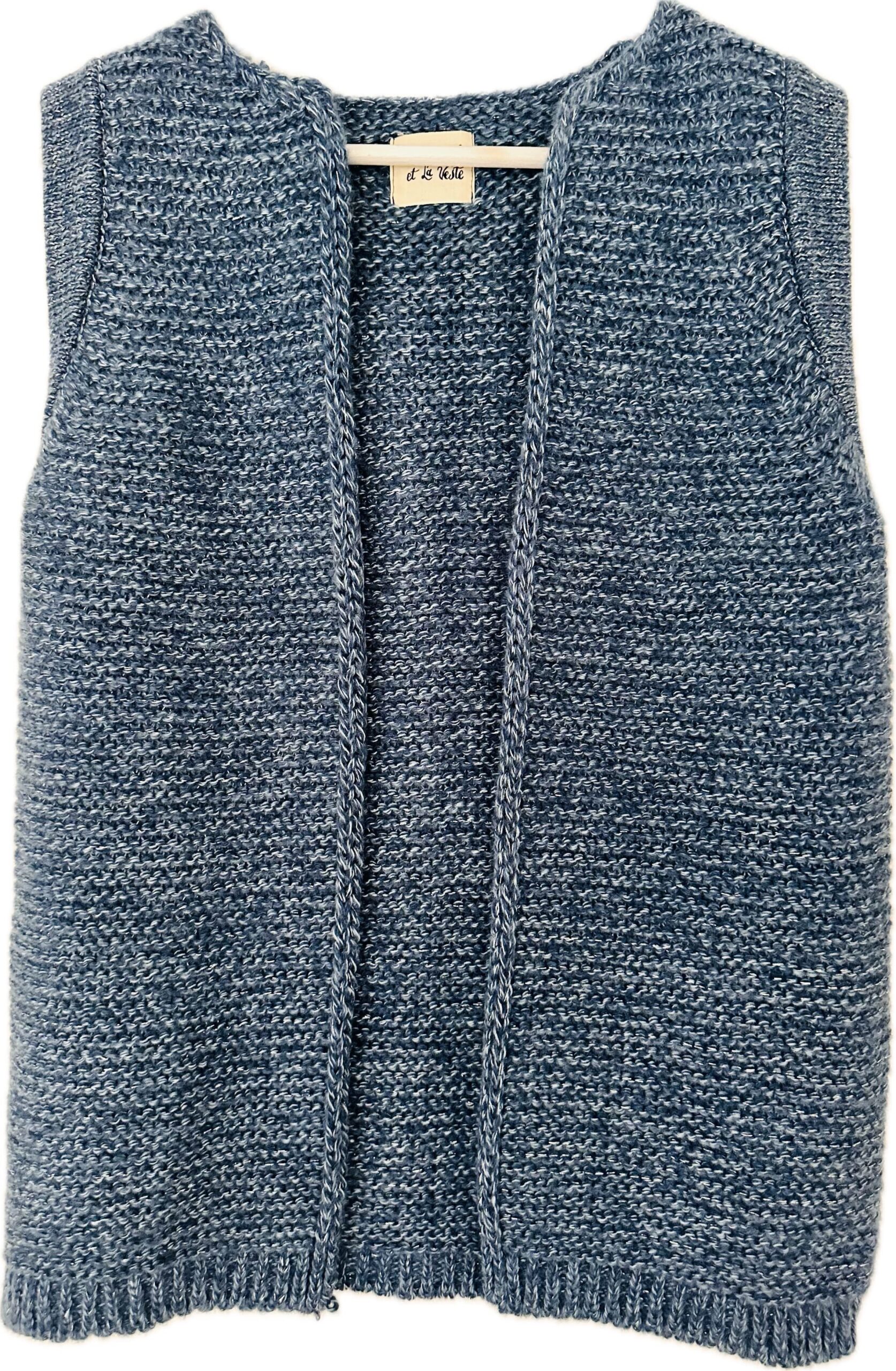 Chaleco de punto confeccionado en mezcla de lana 33% y acrílico 67%, con hilo de lúrex. Ideal para llevar encima de cualquier camisa o blusa y darle al look un toque más cálido.