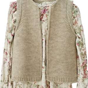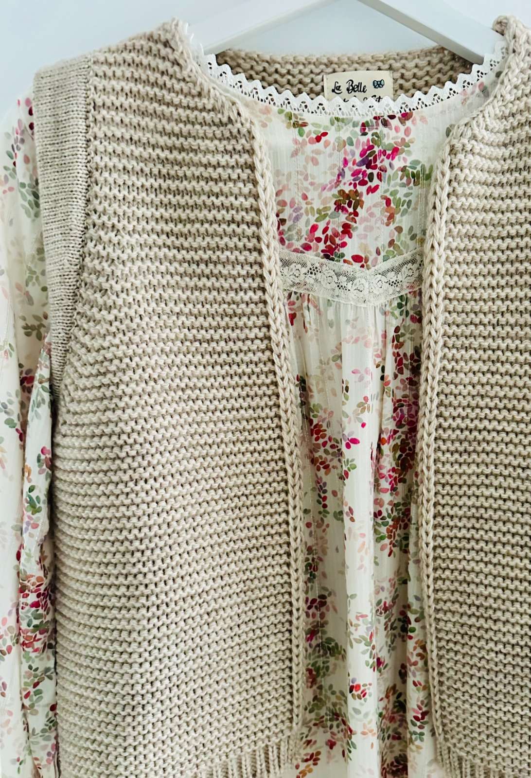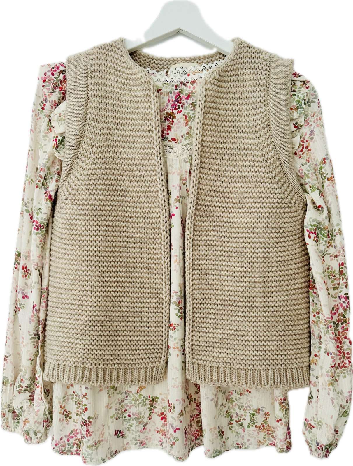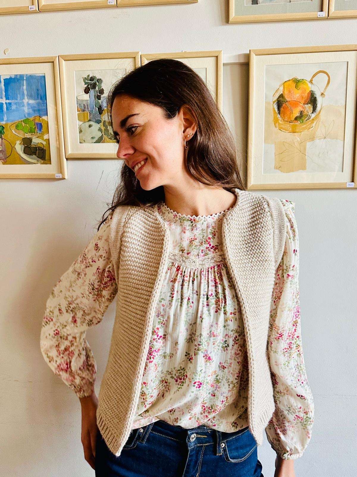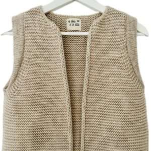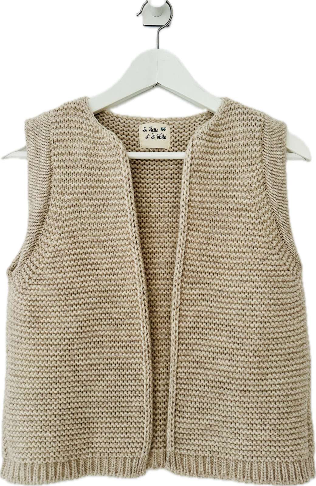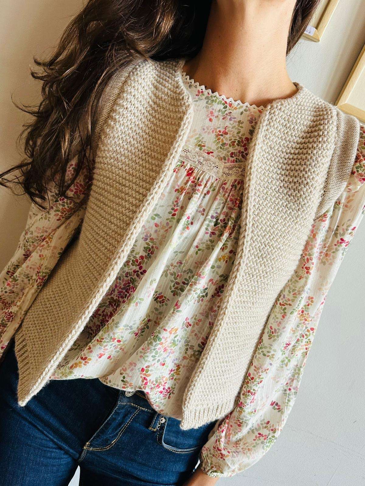 Chaleco corto de punto confeccionado en mezcla de lana y acrílico, con hilo de lúrex. Ideal para llevar encima de cualquier camisa o blusa y darle al look un toque más cálido (talla pequeño).